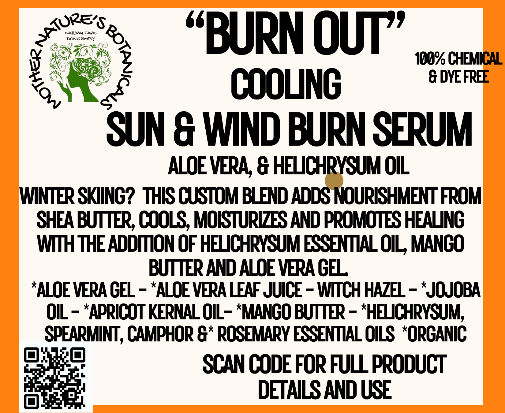 "BURN OUT" Soothing Wind & Sunburn Serum with Aloe & Helichrysum oil (excellent winter skin protection) burn serum)