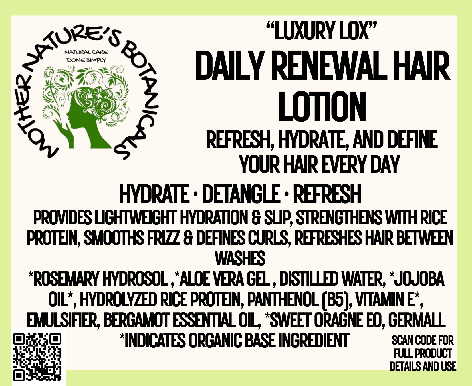 "LUXURY LOX" Daily Renewal Hair Cream - with Rosemary & Pro Vitamin B5 (Leave in, refresher, heat protectant))