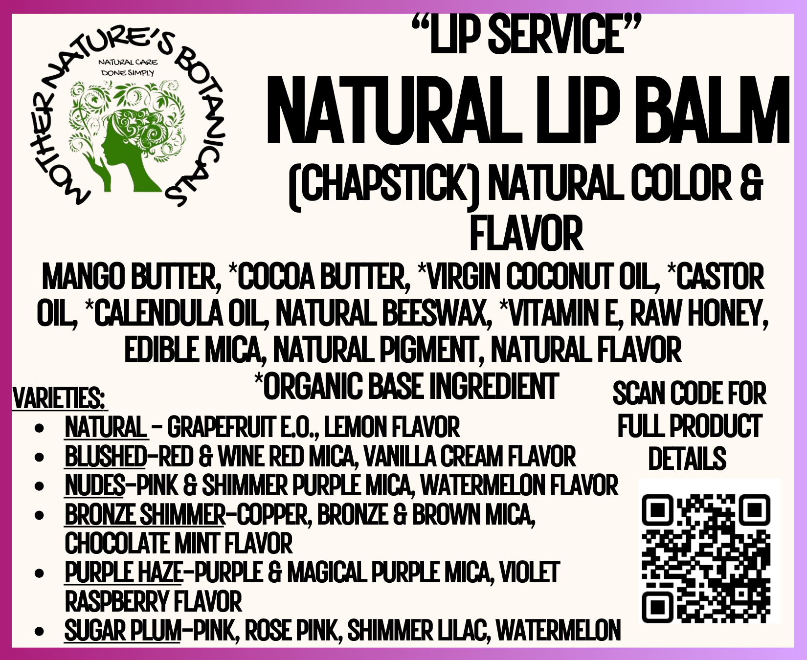"Fresh Face" - "Lip Service" Natural Lip Balm with Cocoa Butter (6 shades)